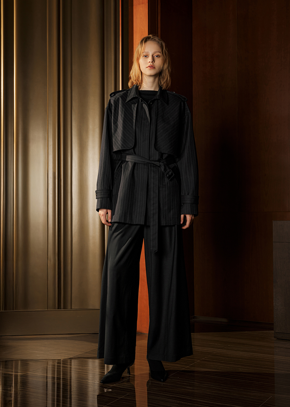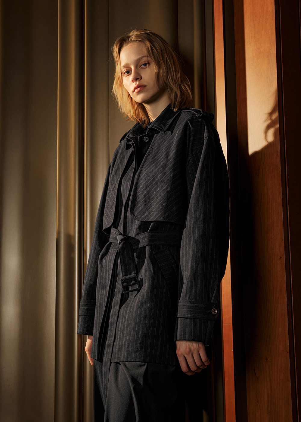 暗條紋中長風衣外套