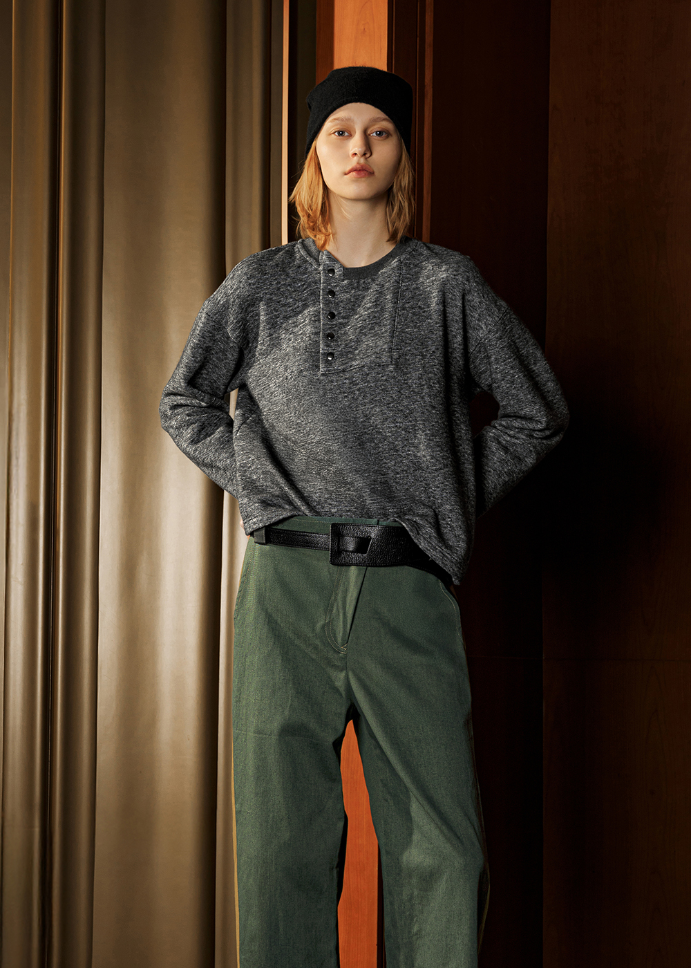 不對稱半門襟針織上衣