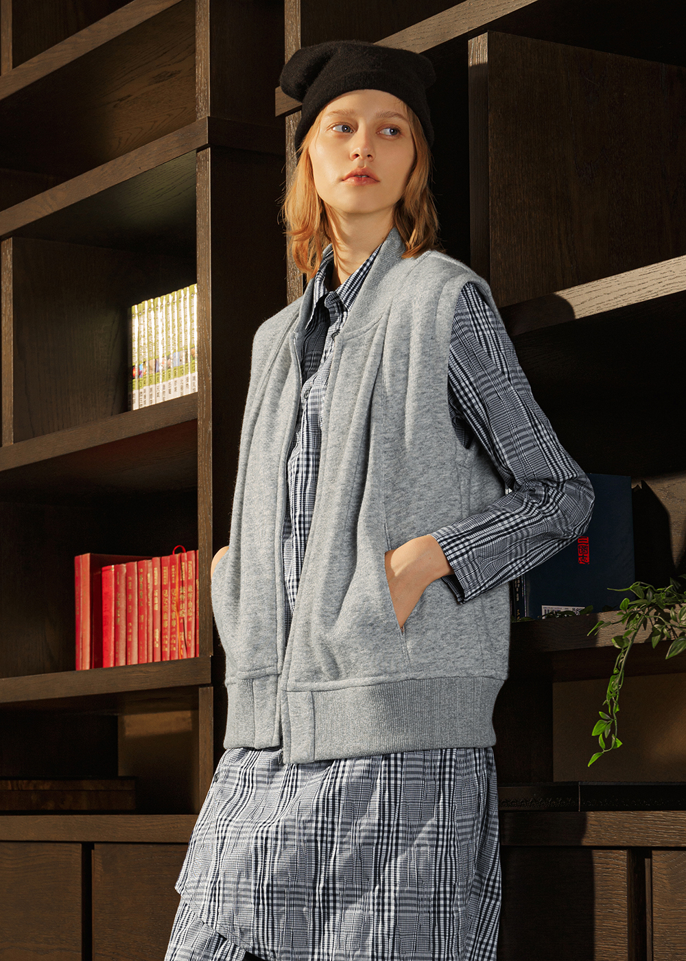 靜序交錯雙釦背心洋裝