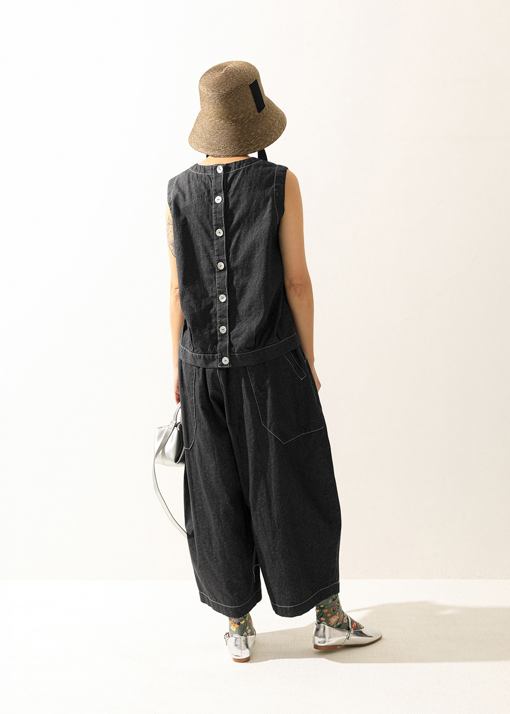 | 描線撞色| 結構無袖背心・輪廓丹寧棉