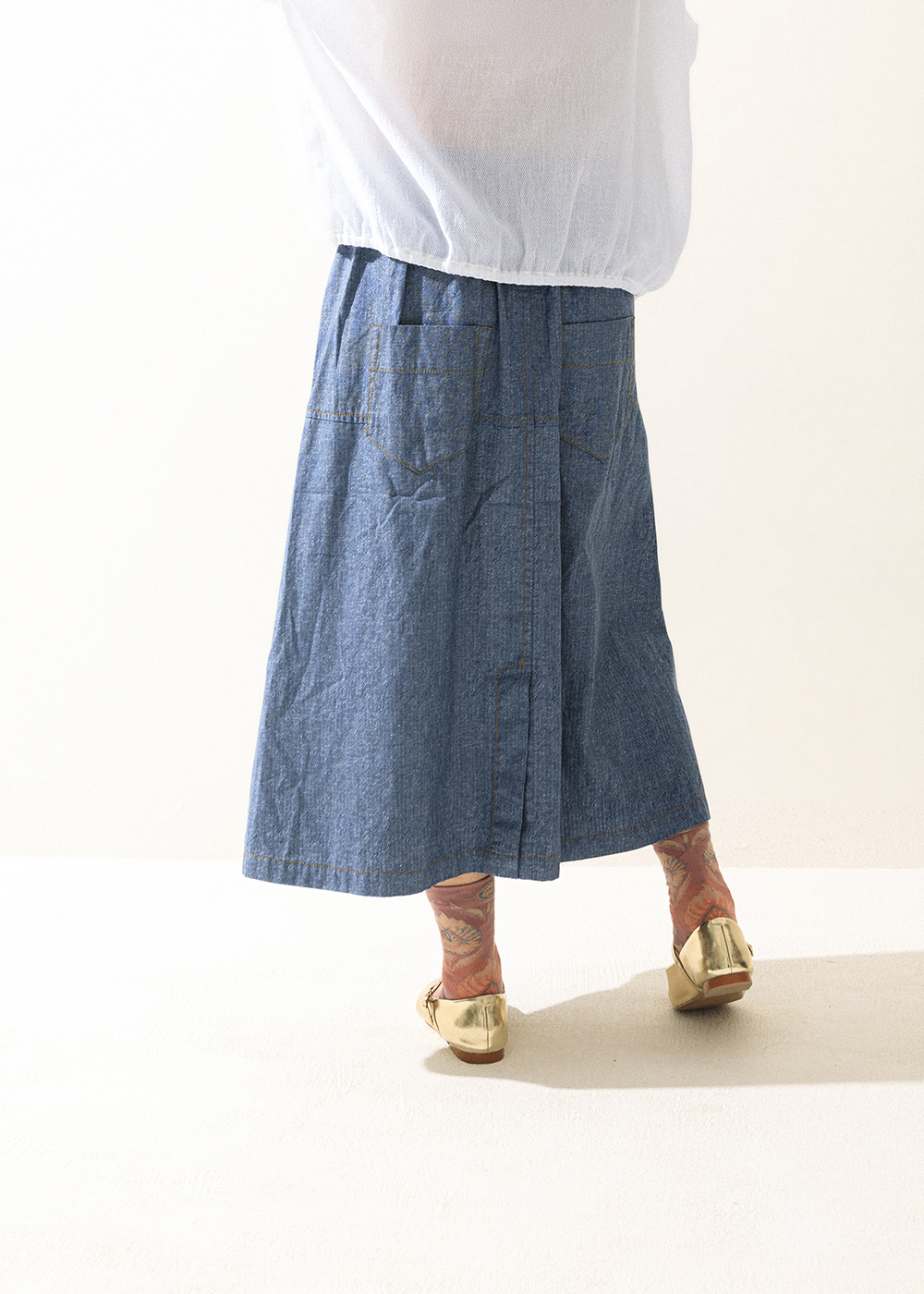 | 描線撞色 | 剪接A字長裙・輪廓丹寧棉