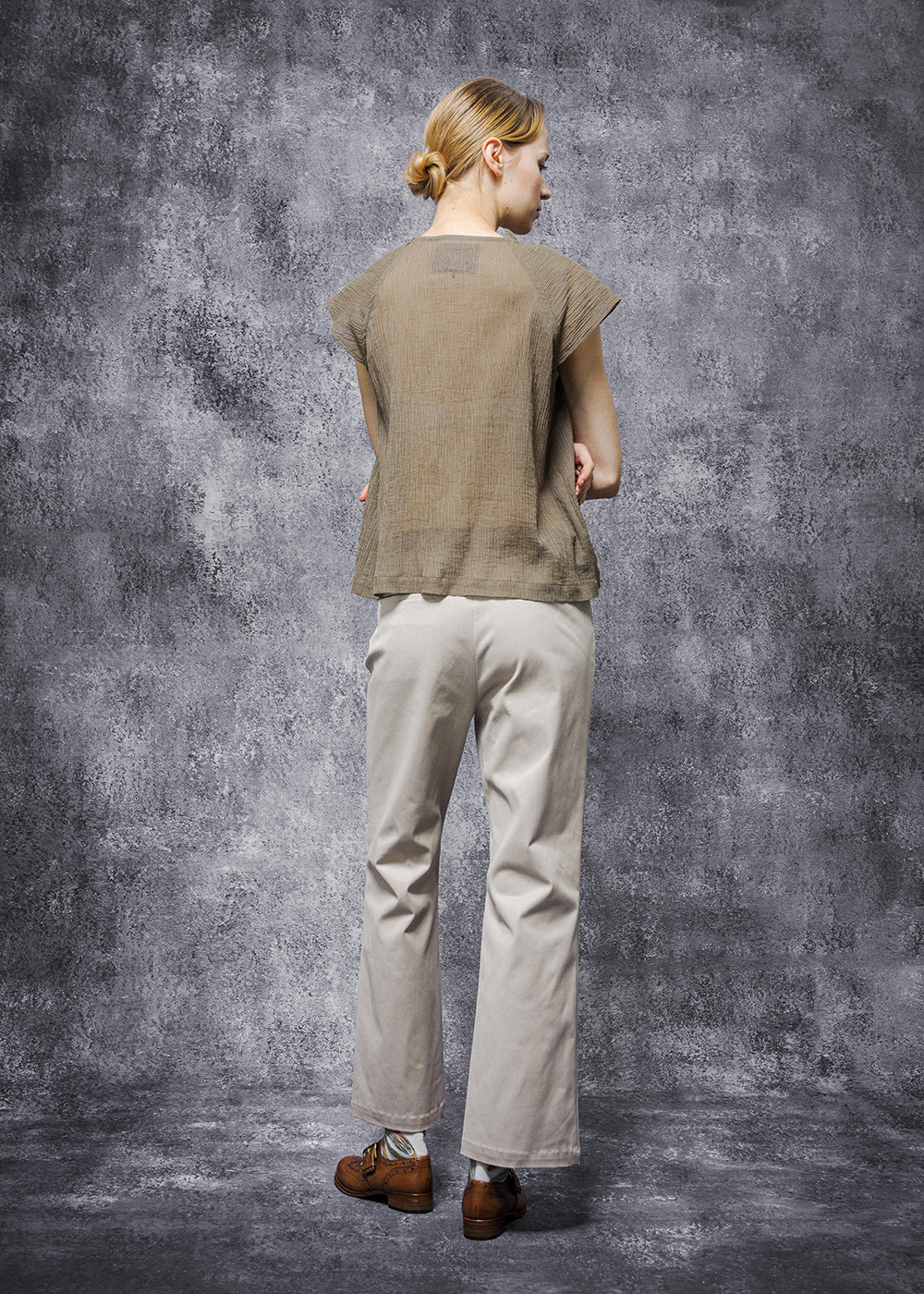 靛序直向織理五分袖寬版上衣