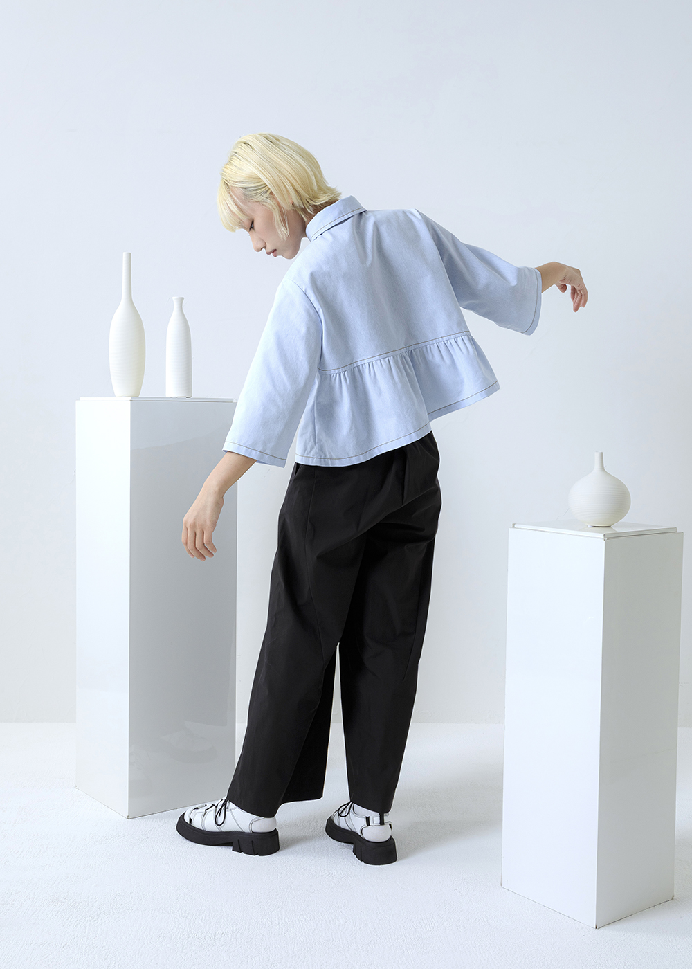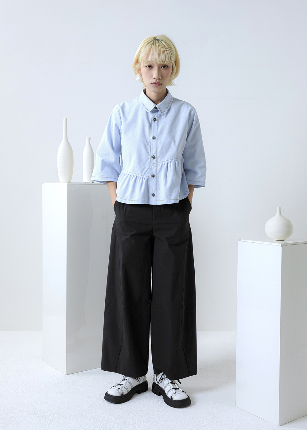 |純粹植感|疊韻斜襟不對稱寬褲