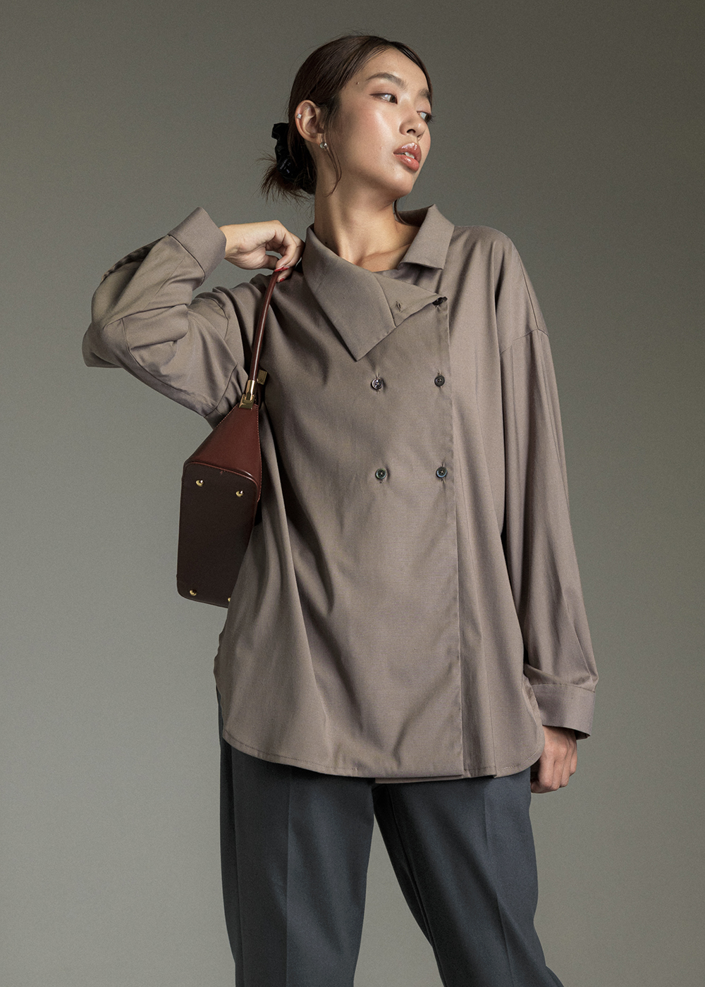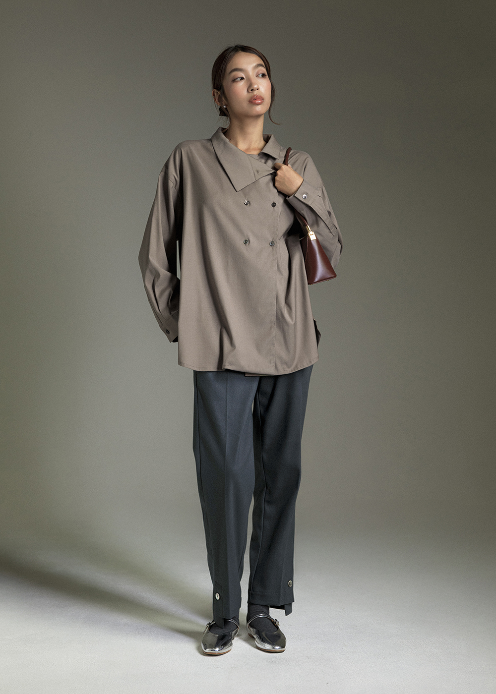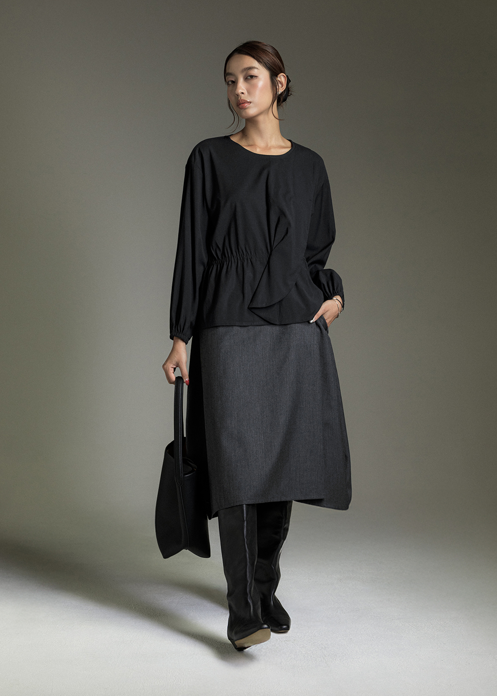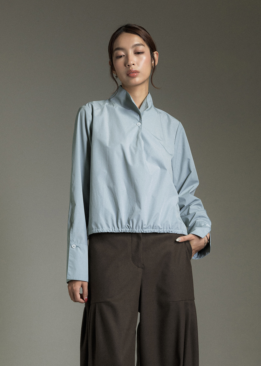 沉著微褶弧襬襯衫
