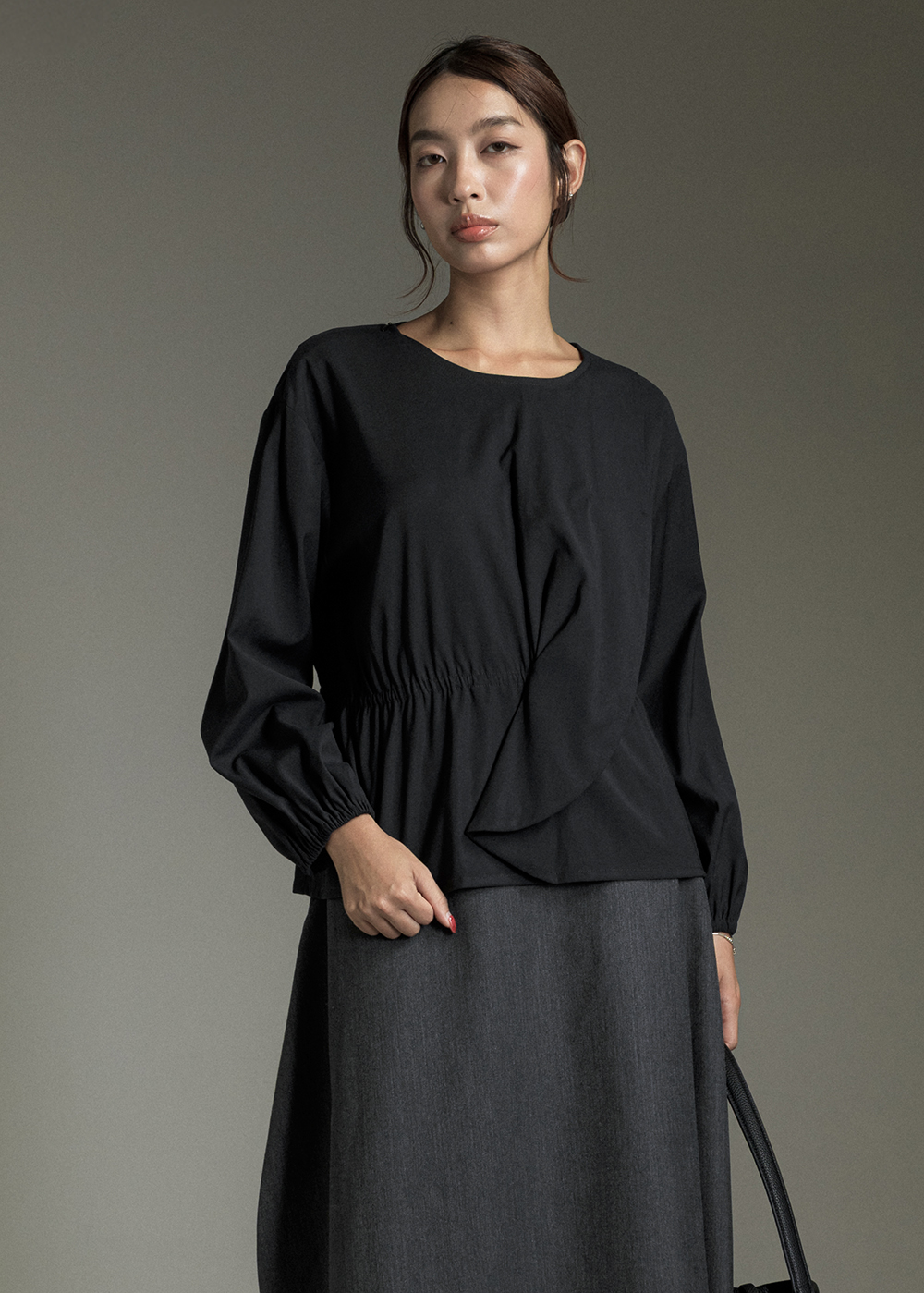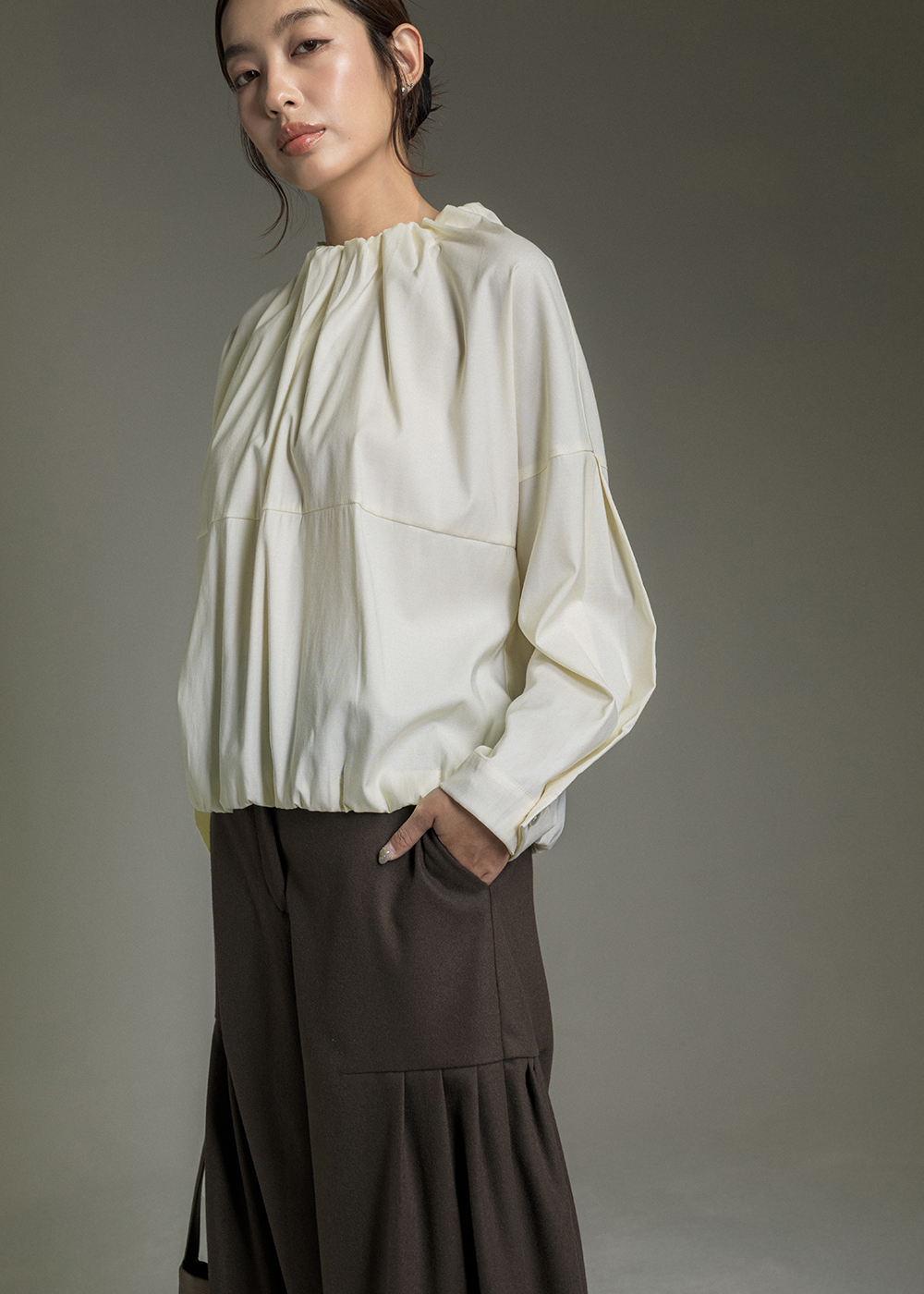 微瀾立褶花苞長袖上衣