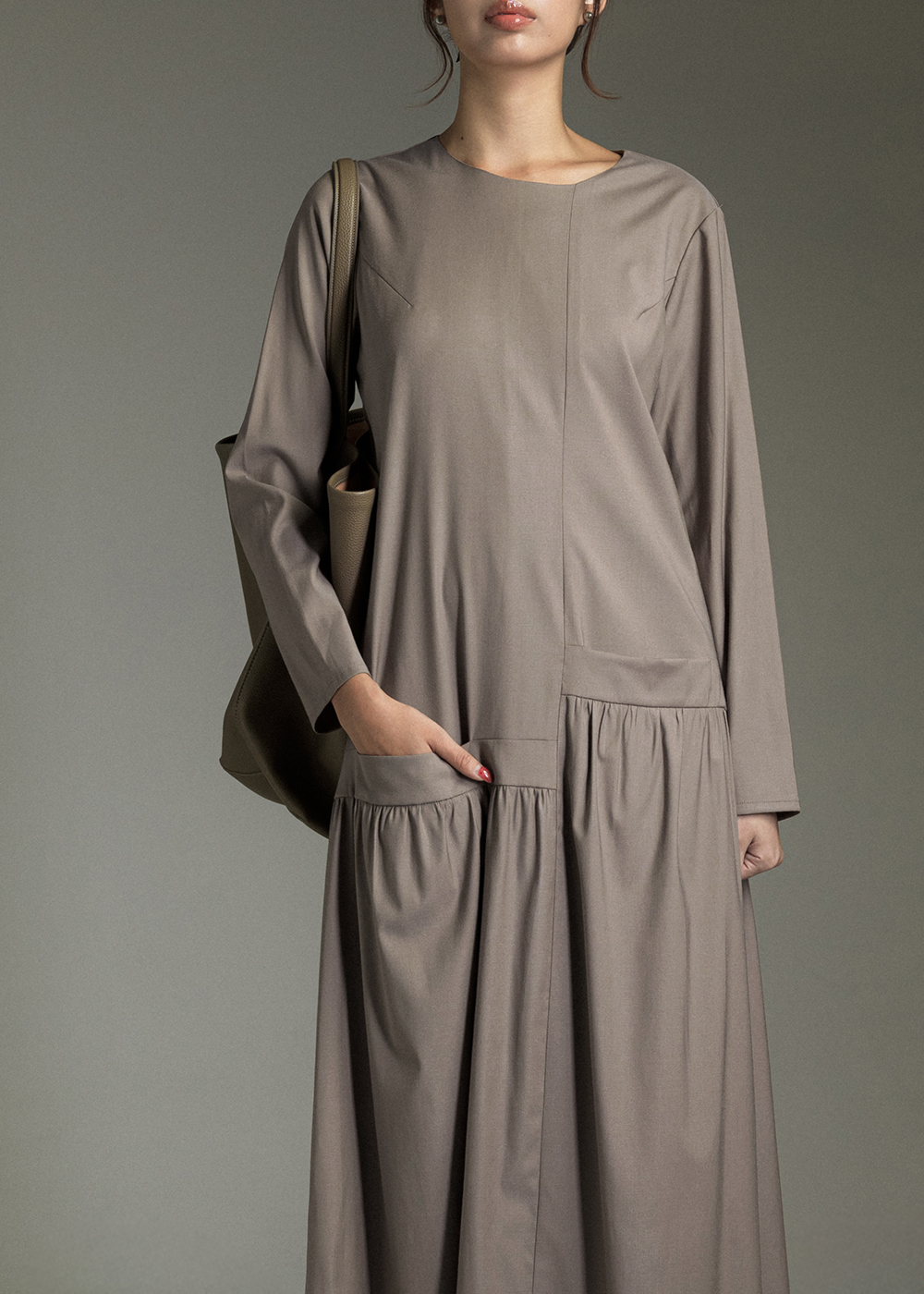 微瀾立裁抽皺長洋裝