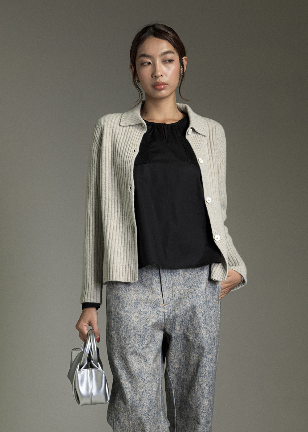 襯衫領羅紋開襟羊毛外套