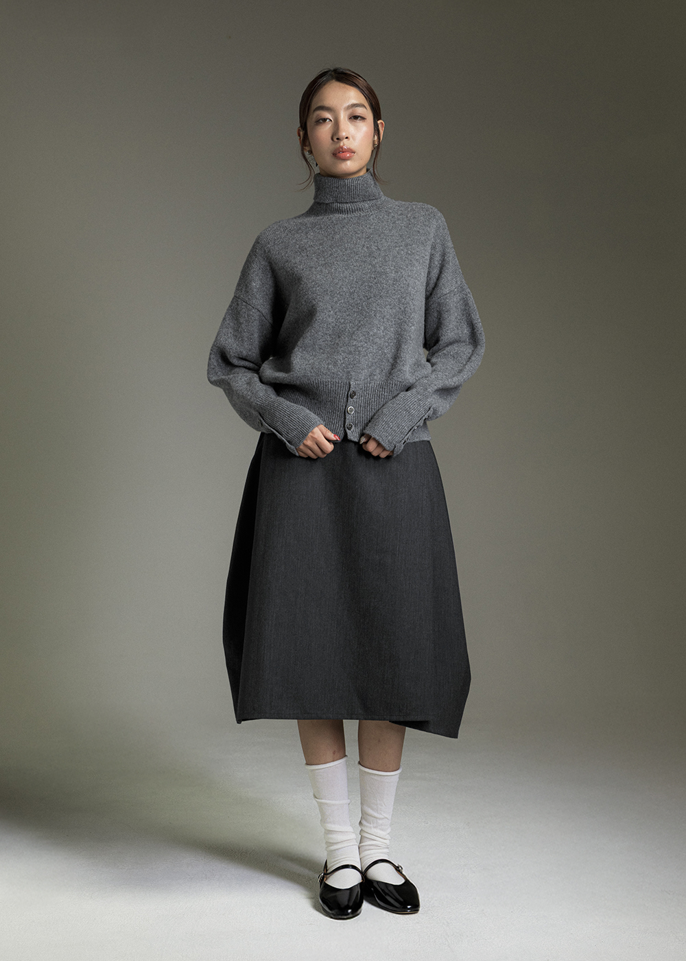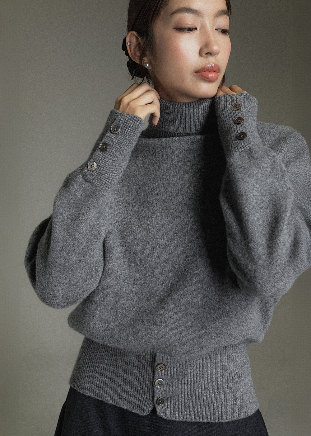 釦飾羅紋高領羊毛衣