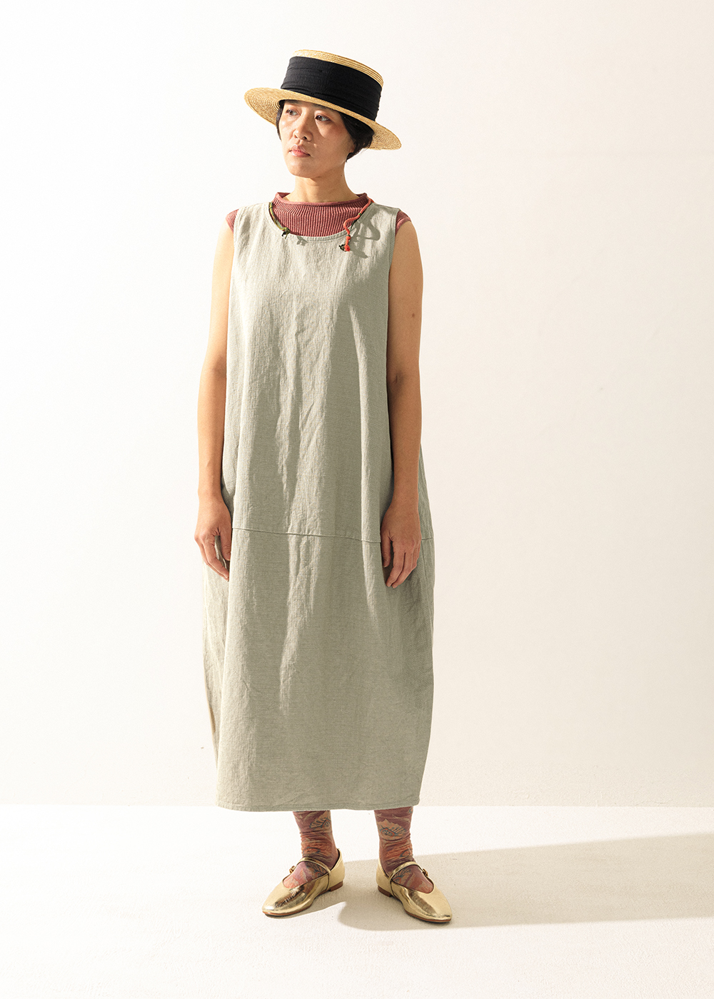 |沁風麻織 |微瀾穿繩領亞麻洋裝