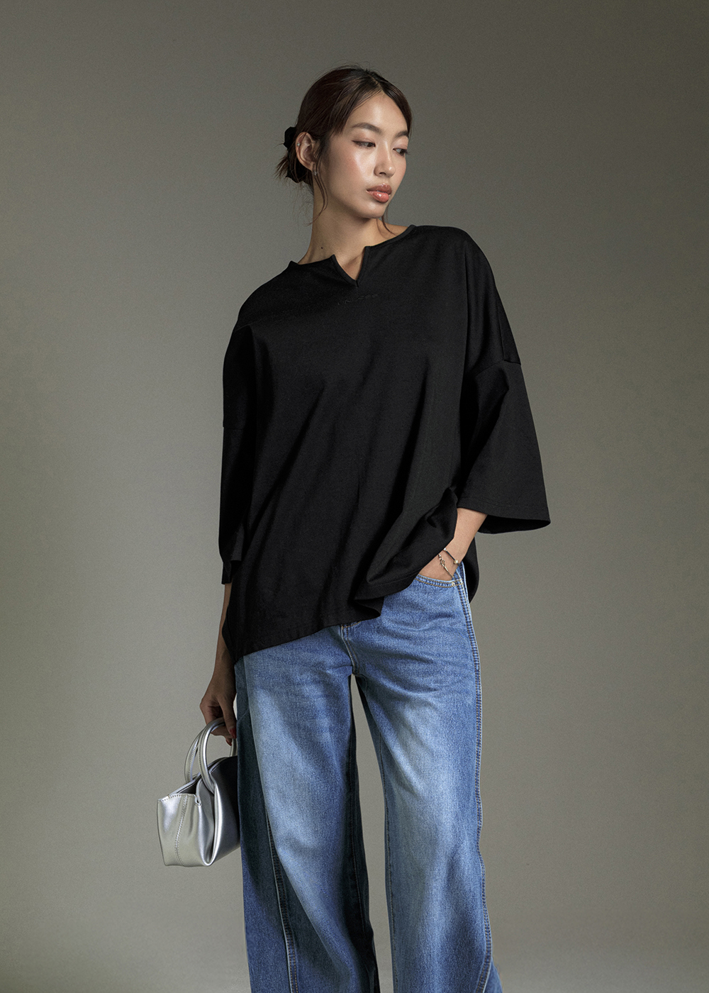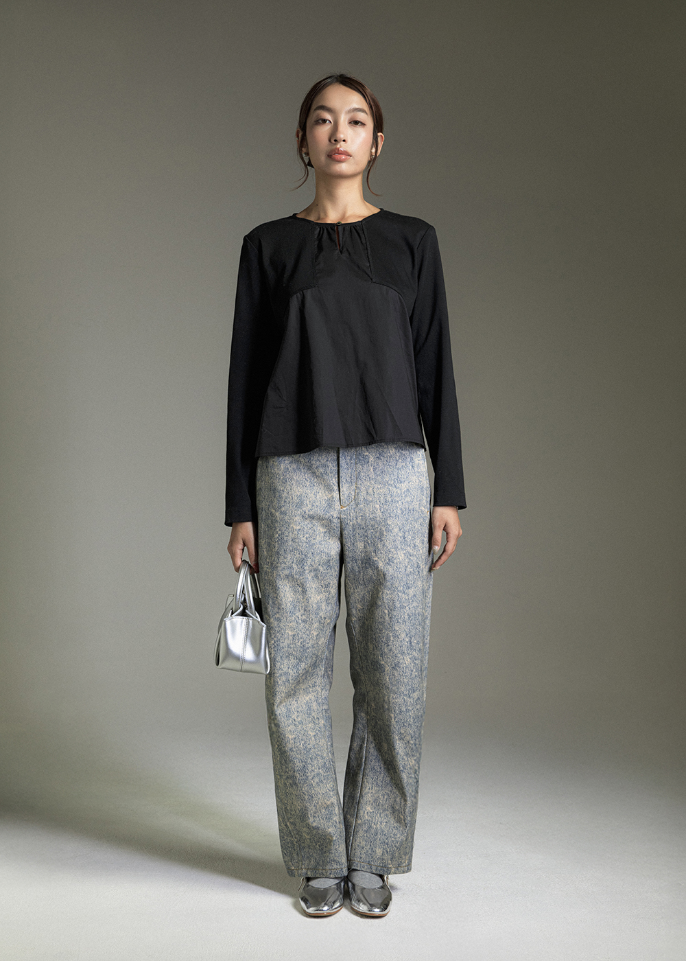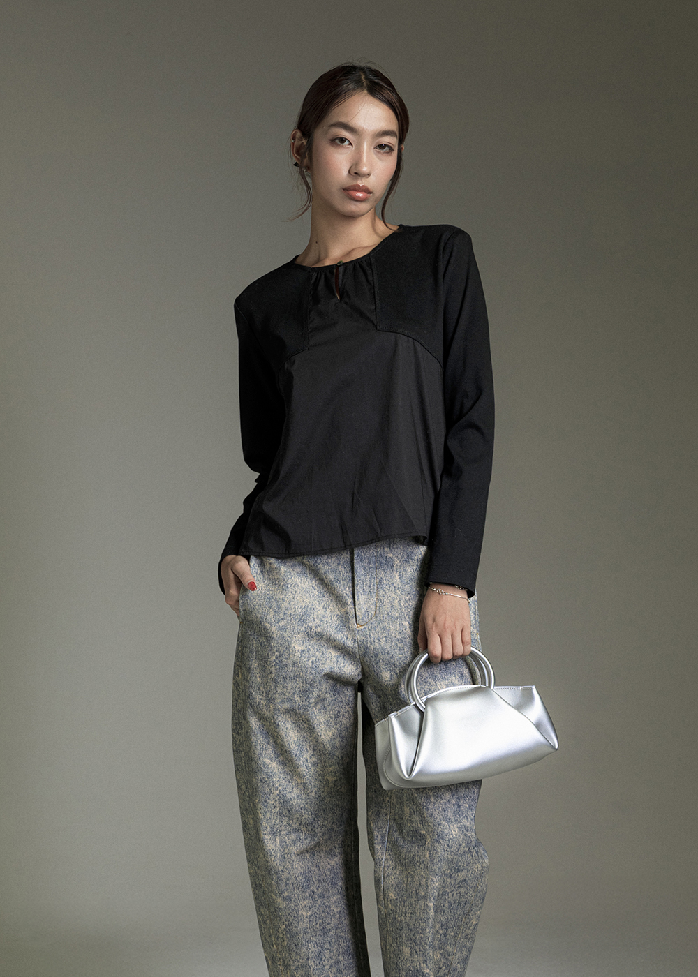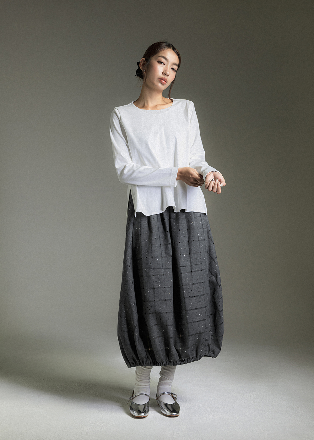 圓領寬袖抽皺上衣