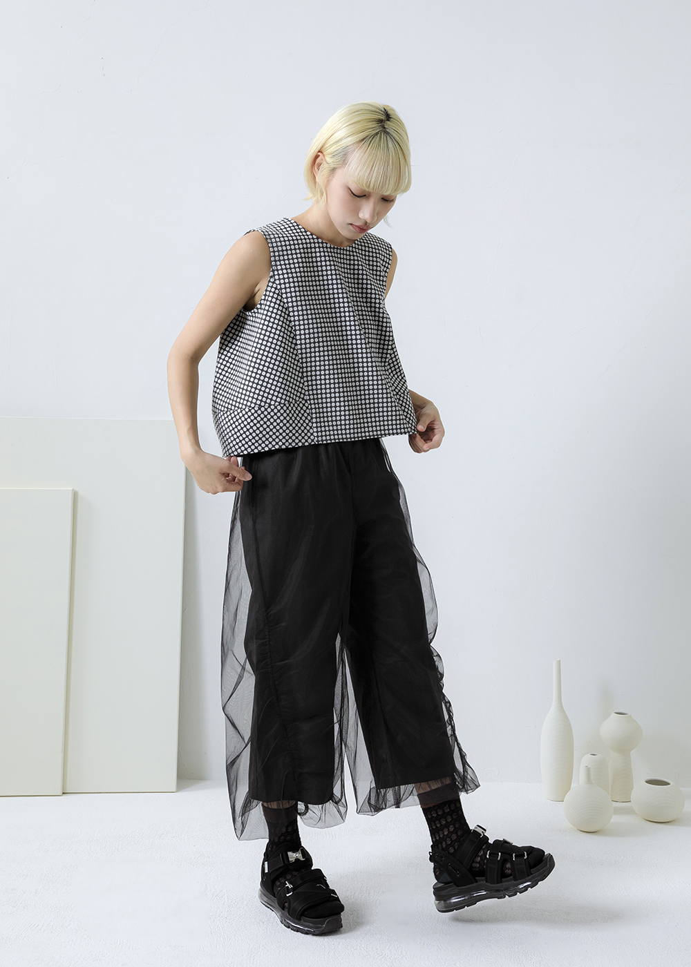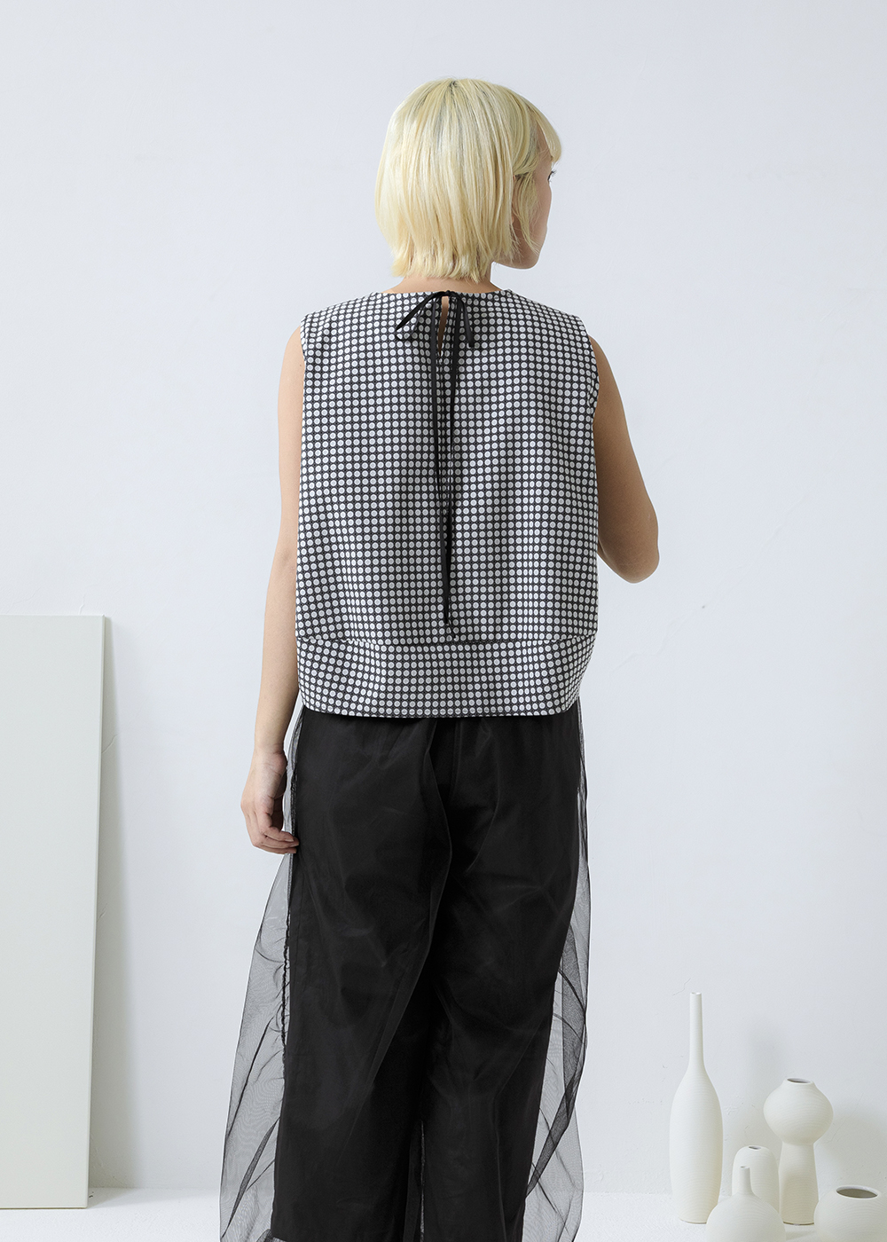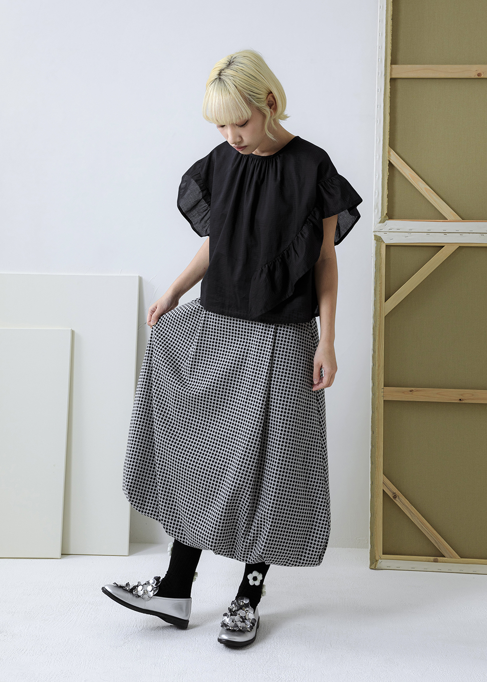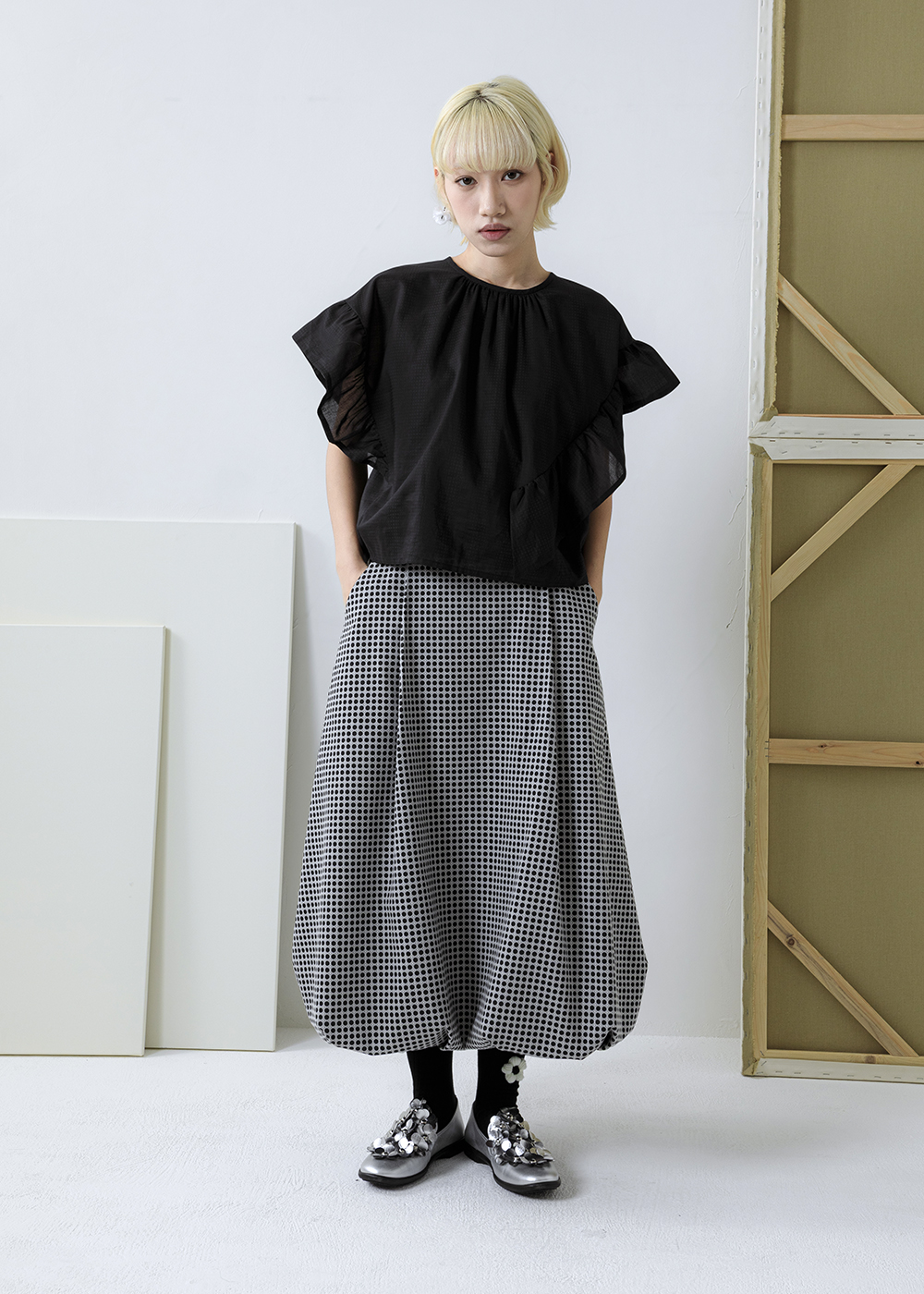 | 空氣霧格 | 疊影不對稱翻領縮口上衣