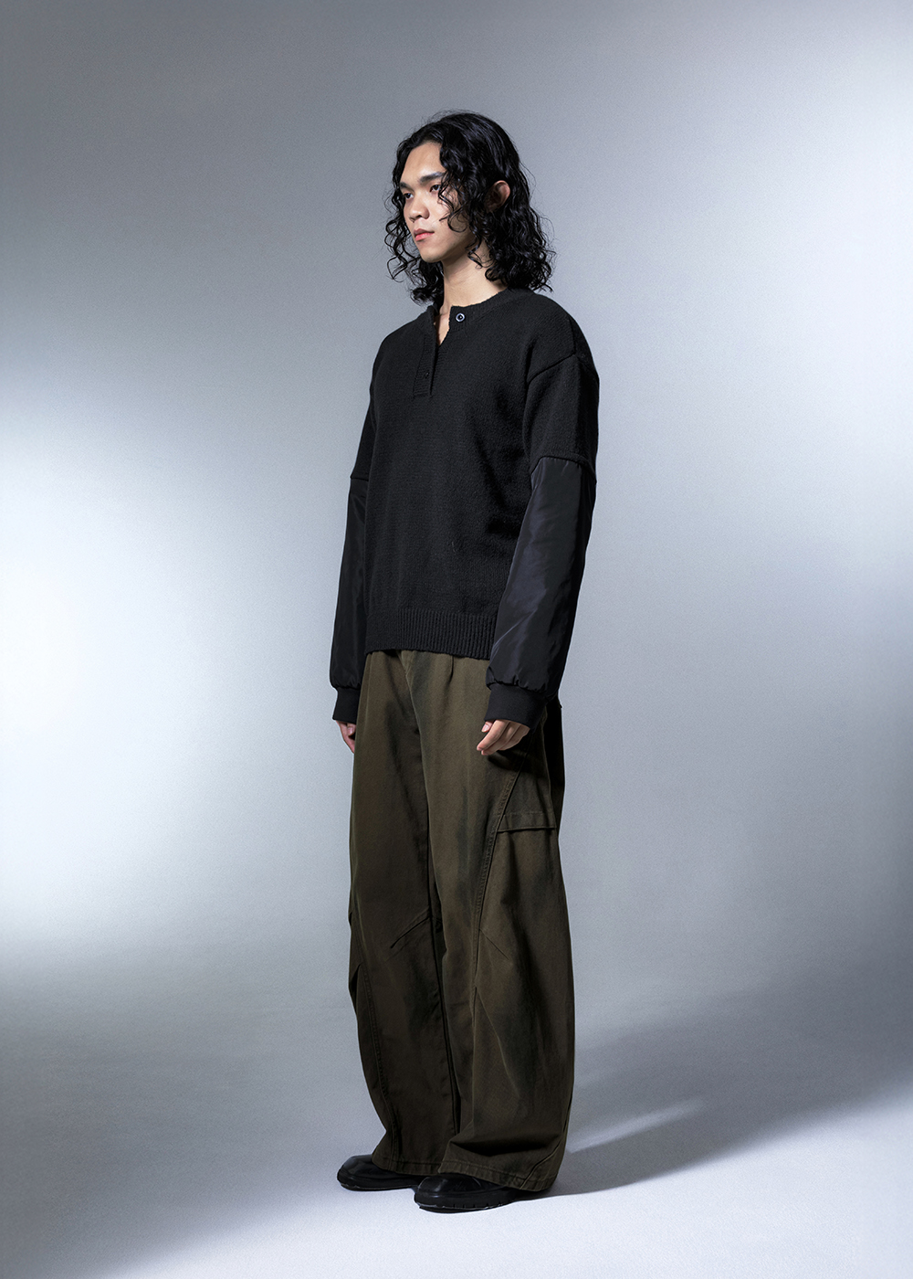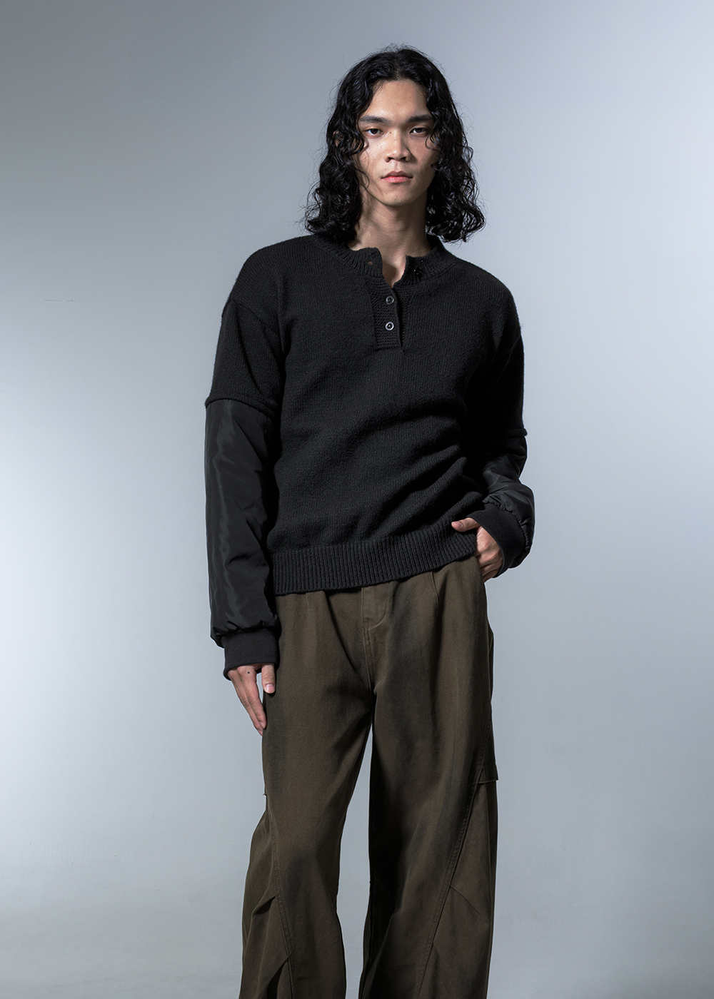 異材質拼接長袖毛衣