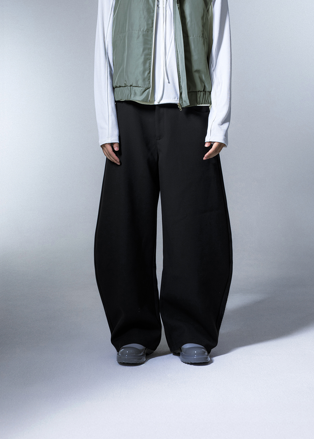 輕刷色斜線打褶寬褲