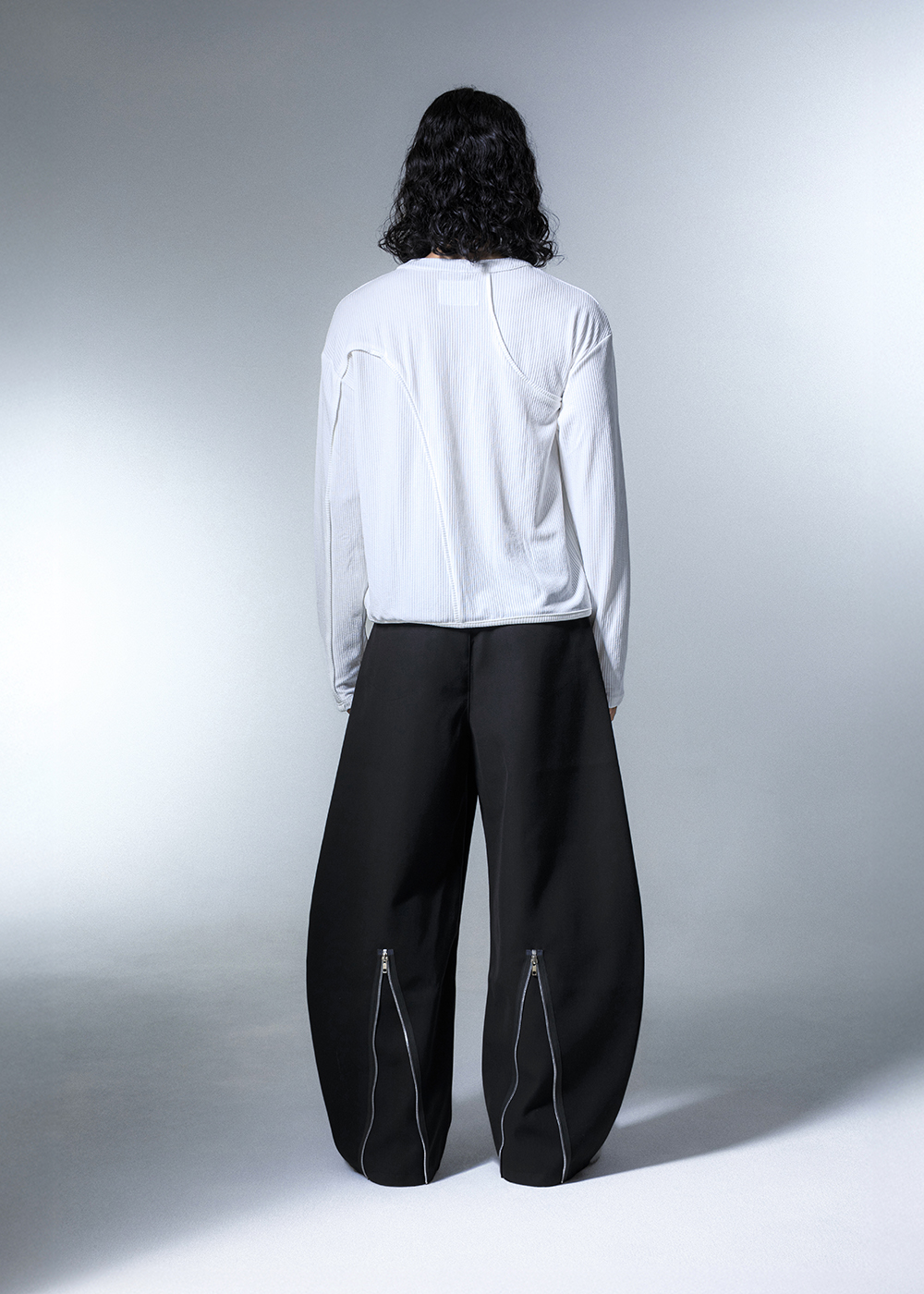 後下襬拉鍊可調節彎刀褲